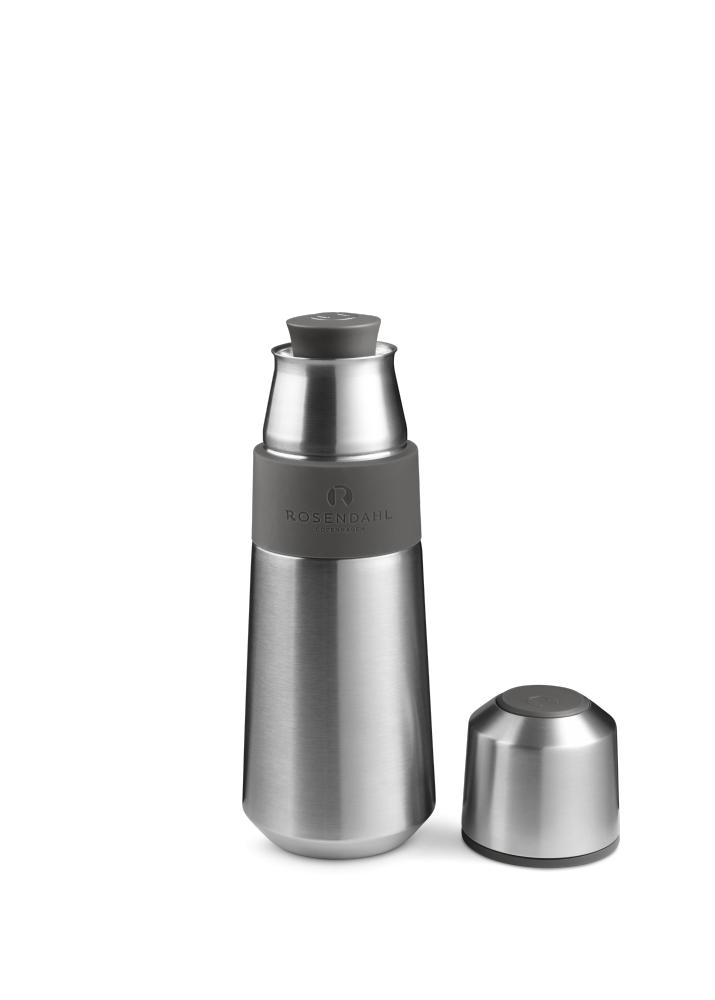 Rosendahl har øje for Outdoor living og et liv på farten. Derfor har de designet Grand Cru Outdoor, der er en serie beregnet til udendørs brug, hvor kvaliteten er helt i top. Her får du en termoflaske, der kan rumme 65 cl, og som kommer med detaljer i en flot sandfarve. Kombinationen af stål og det sandfarvede gummi gør denne termoflaske elegant at se på, samtidig med at du kan være sikker på, at den holder helt tæt. Alle produkter i denne serie er fri for ftalater og bisphenol A (BPA), og så kan du nemt vaske den op i opvaskemaskinen. En praktisk trykknap sørger for, at termoflasken holder helt tæt og kan åbnes med én hånd.