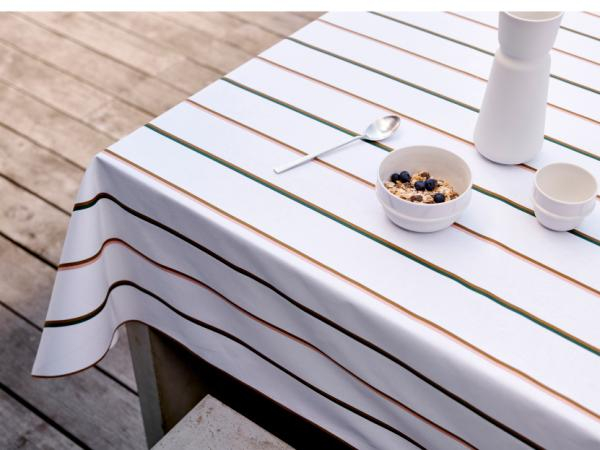 Flot akryldug til bordet i 100% bomuld med antiskrid på bagsiden, så din dug ligger sikkert og fast.